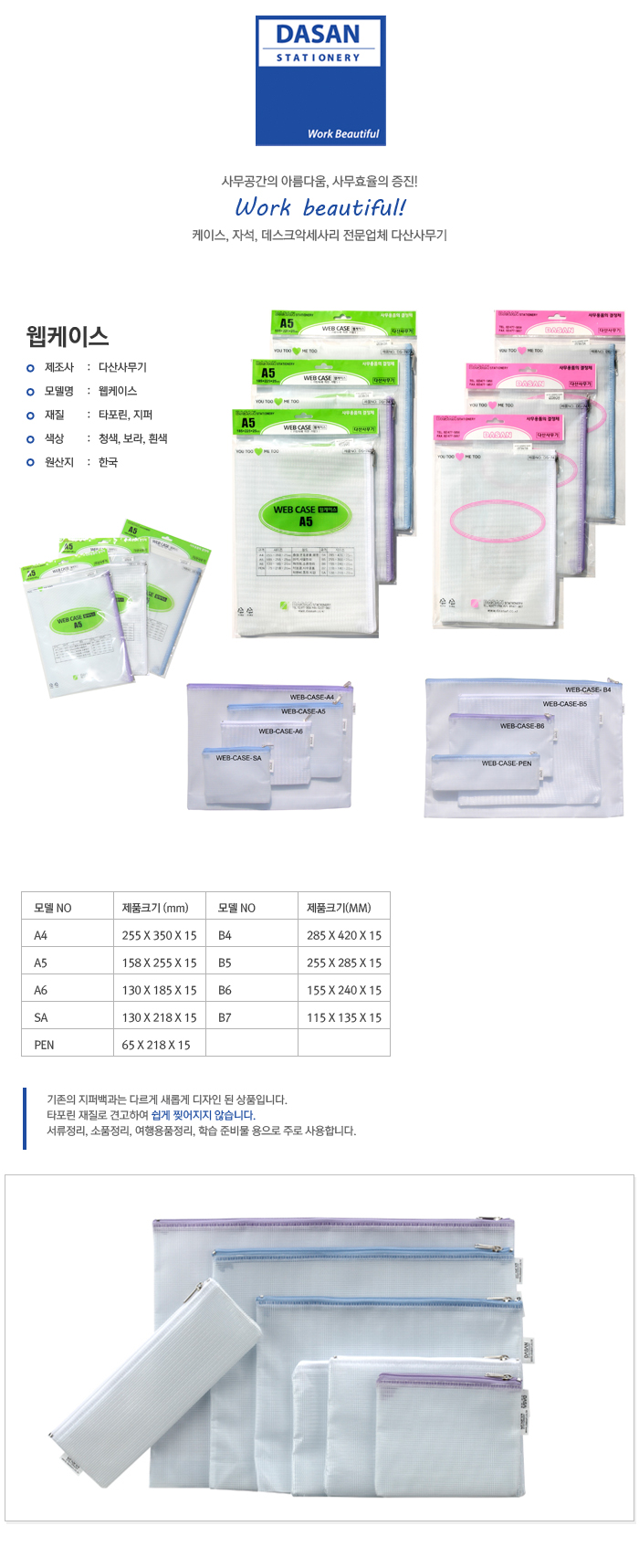 * 다산사무기* 재질이 부드러우며, 생활의 편리한 소품 케이스* 출장, 운동, 준비물 등을 보관하는대 용이한 제품