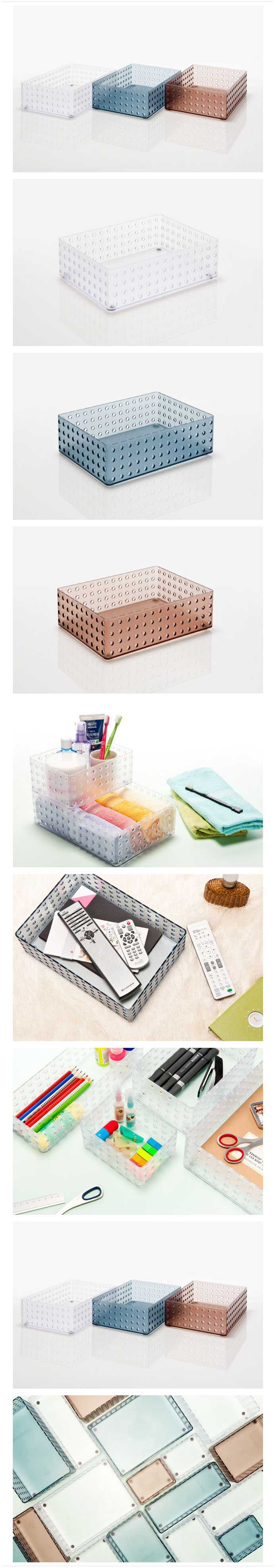 *제품설명 다양한 소품을 담아 정리하는 소품트레이 투명소재로 화장품, 악세서리, 문구류, 생활소품 수납 사이즈별로 적층이 가능 사무실, 거실, 욕실 다양한쓰임새 규격(mm) - W200 x D140 x H85 재 질 - GPPS *법에의한 인증,허가등을 받았음을 확인할수 있는 경우 그에대한 사항 - 해당없음 *제조국또는 원산지 - 국산 *수입여부 - 해당없음