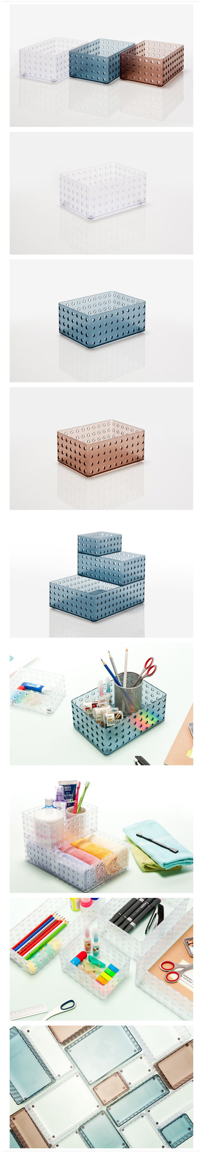 *제품설명 다양한 소품을 담아 정리하는 소품트레이 투명소재로 화장품, 악세서리, 문구류, 생활소품 수납 사이즈별로 적층이 가능 사무실, 거실, 욕실 다양한쓰임새 규격(mm) - W200 x D140 x H85 재 질 - GPPS *법에의한 인증,허가등을 받았음을 확인할수 있는 경우 그에대한 사항 - 해당없음 *제조국또는 원산지 - 국산 *수입여부 - 해당없음