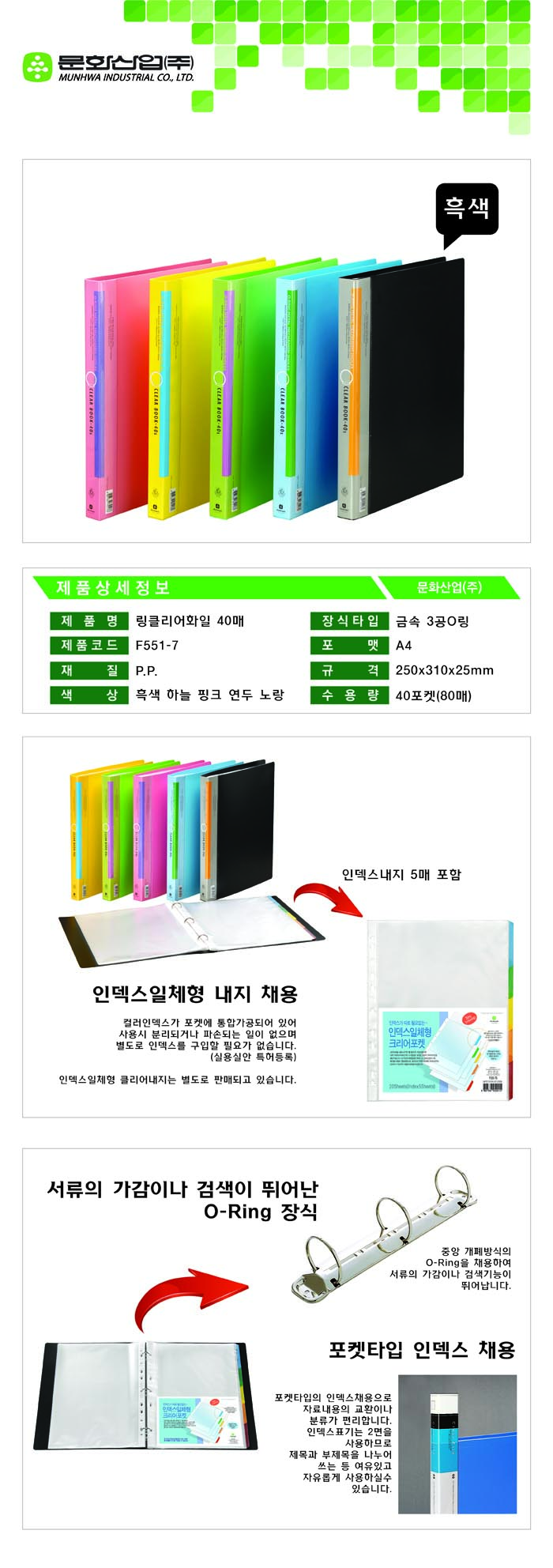 ■ 품명 및 모델명: 링클리어화일 (A4/40매/흑색/문화산업)