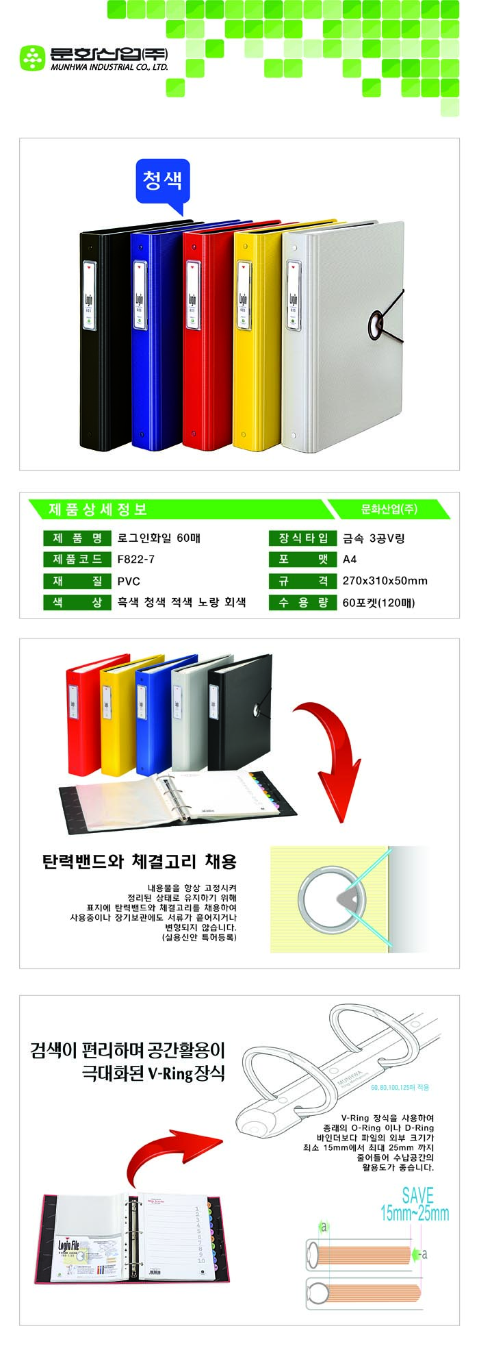 ■ 품명 및 모델명: 로그인화일(F822-7/60매/청색/문화산업)