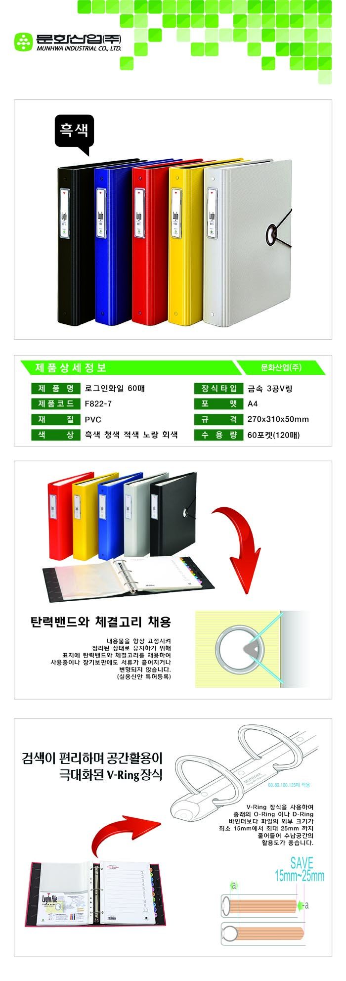 ■ 품명 및 모델명: 로그인화일(F822-7/60매/흑색/문화산업)