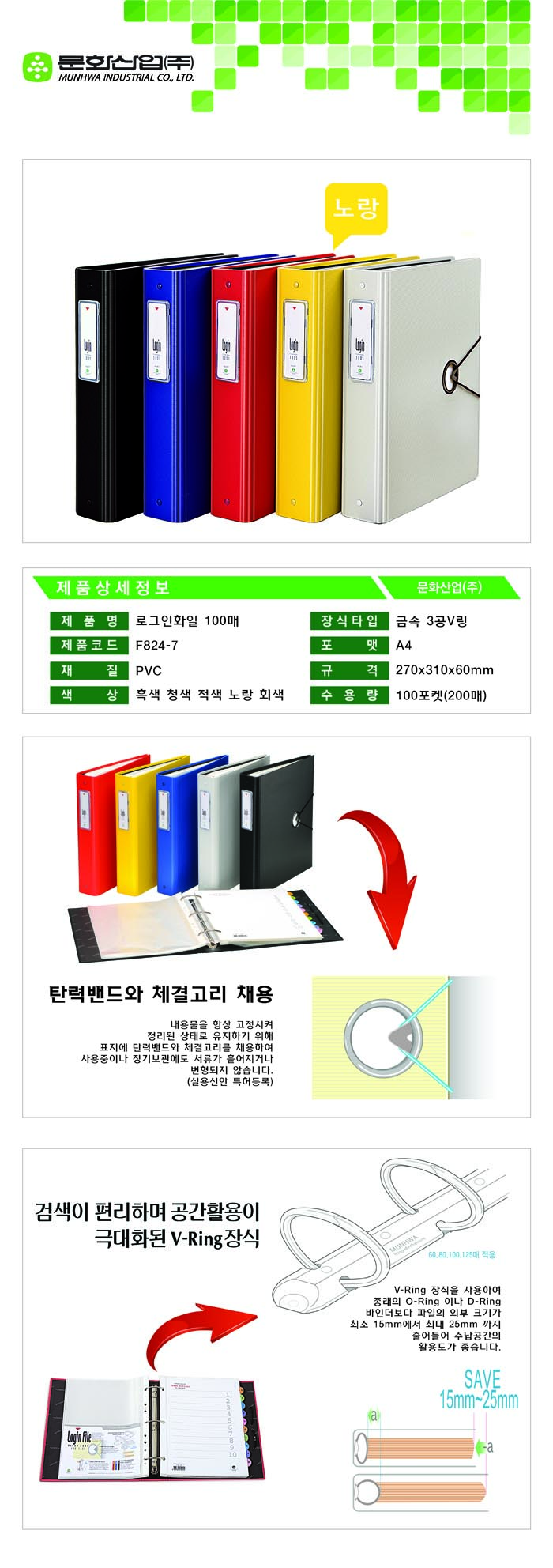 ■ 품명 및 모델명: 로그인화일(F824-7/100매/노랑/문화산업)