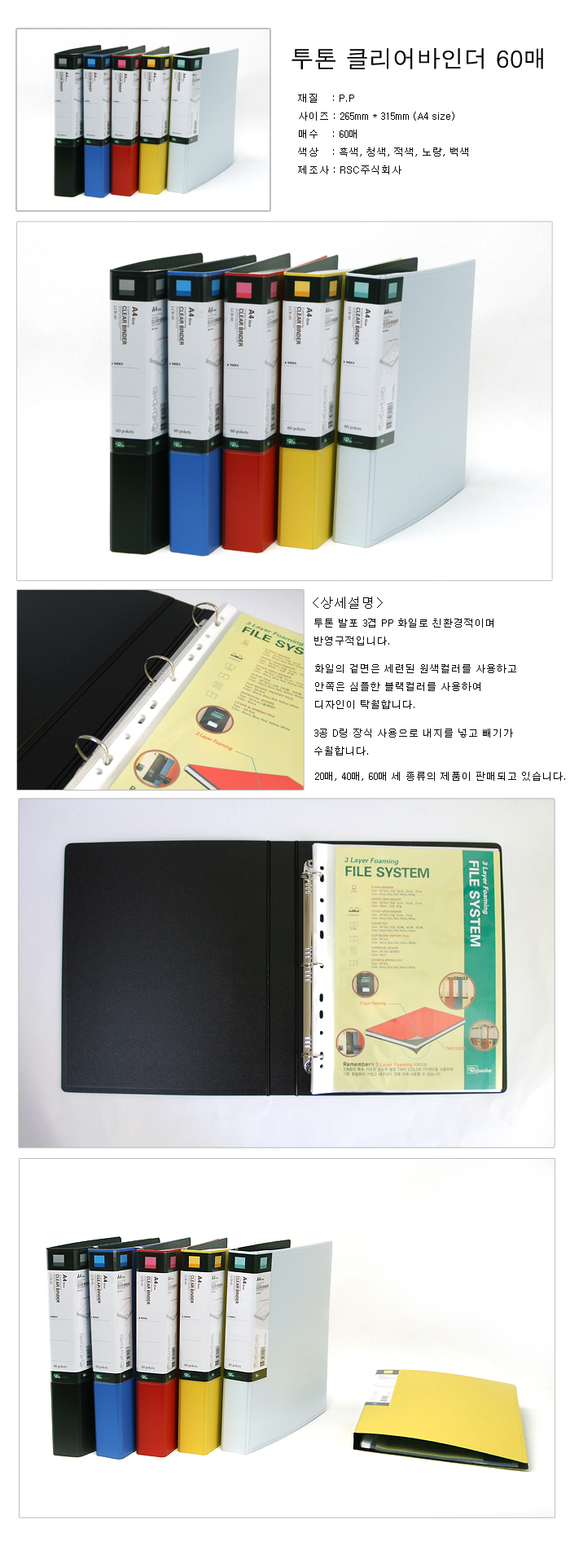 . 링바인더 장식사용으로 내지추가 가능■ 품명 및 모델명: 투톤 클리어 바인더(A4/백색/60매/LCB-60/리멤버)