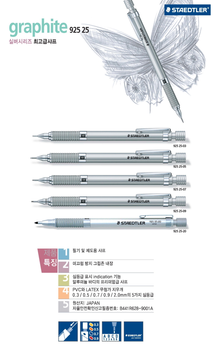 제도샤프(0.9/925 25/1자루/STAEDTLER)/자루/바디:실버