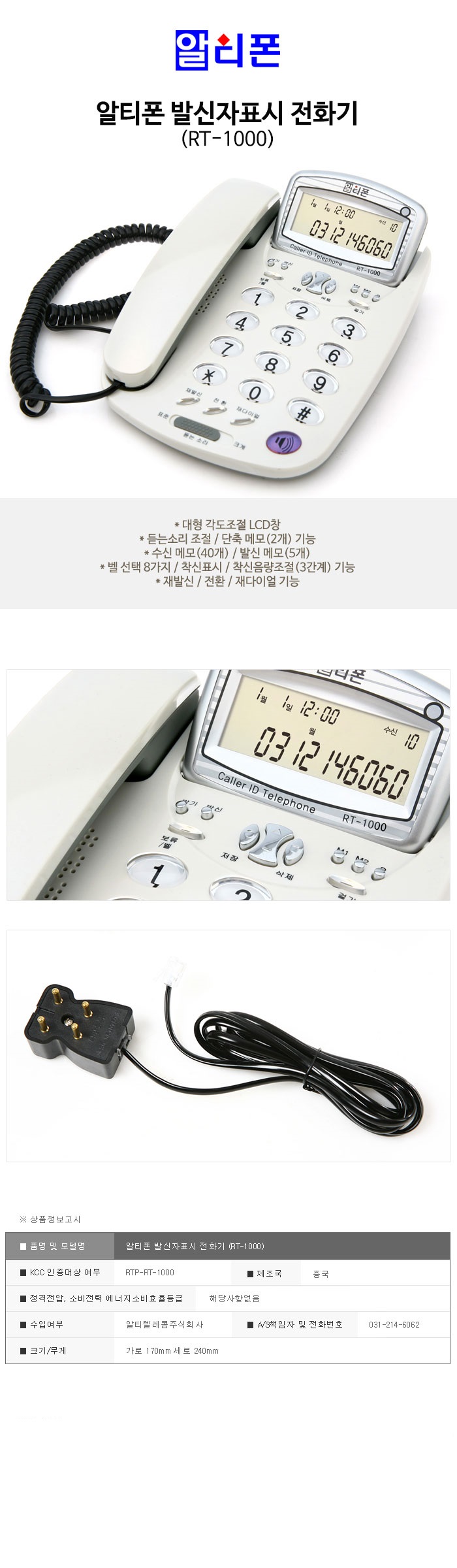 발신자표시 전화기(RT-1000/알티폰)/개