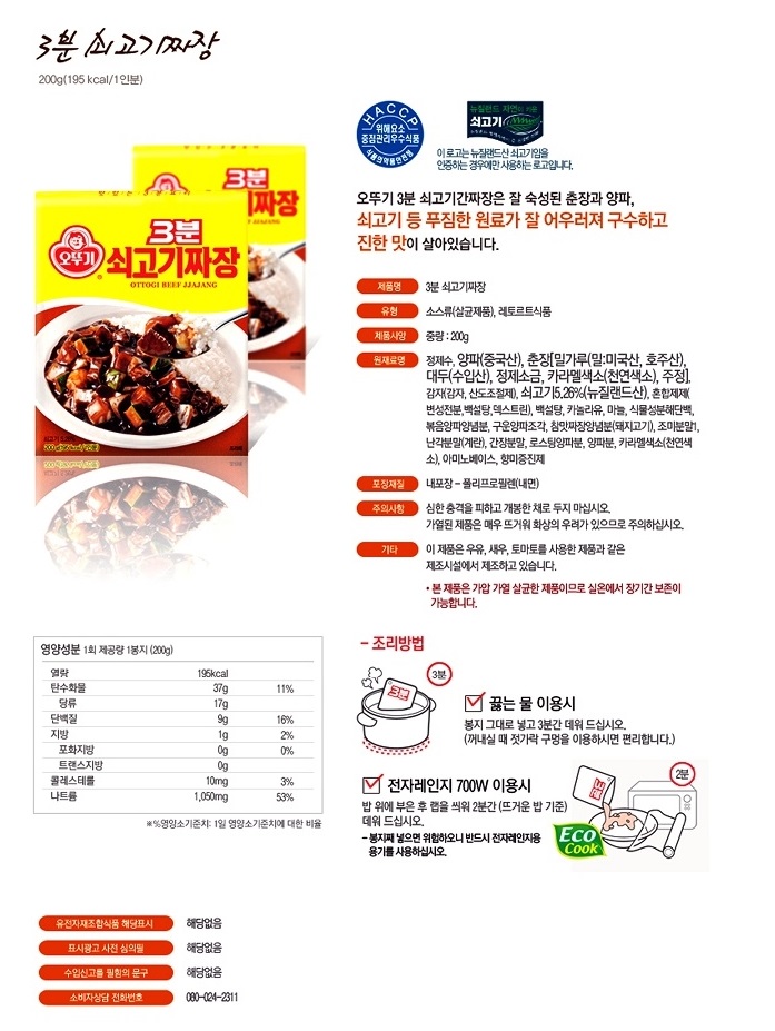 ■ 상품명 - 3분 쇠고기짜장(200g/오뚜기)