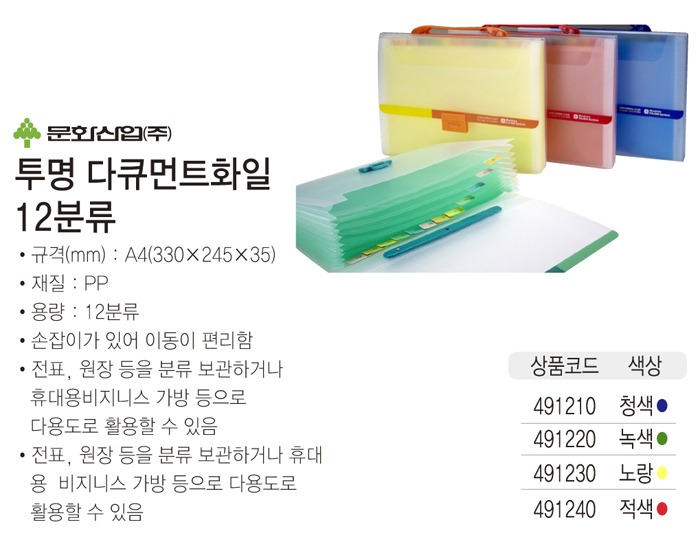 *품명및모델명 - 투명 다큐먼트화일 12분류