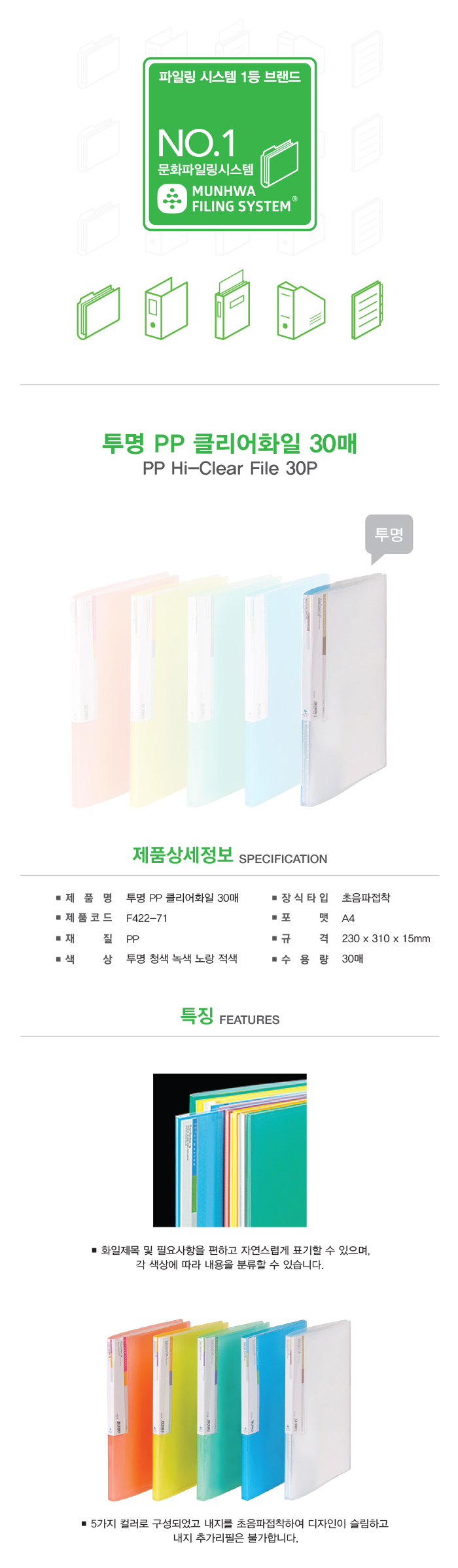 ■ 품명 및 모델명 : 투명PP클리어화일(30매/투명/F422-7/문화산업)