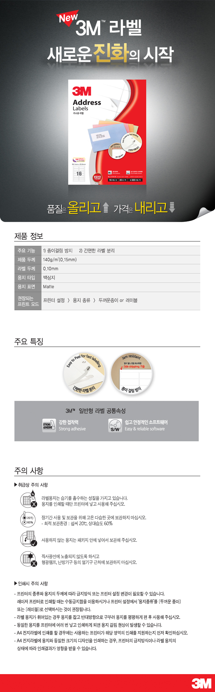 - 3M 고유의 기술을 적용한 간편한 라벨 분리 기능