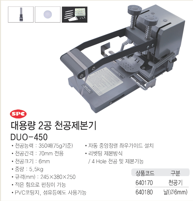 대용량 2공천공제본기 DUO-450 천공기날
