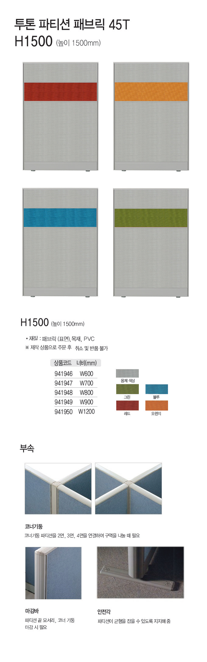 [업체별도배송]45T 패브릭 투톤파티션 일반형 H1500*900/개