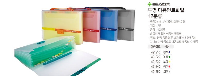 투명 다큐먼트화일 12분류(회색/F5599-7/문화산업)/개/회색