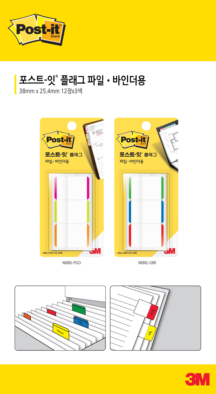 포스트-잇 플래그 인덱스탭 N686L-PGO (파일,바인더용/3색/3M)/개/686L-PGO