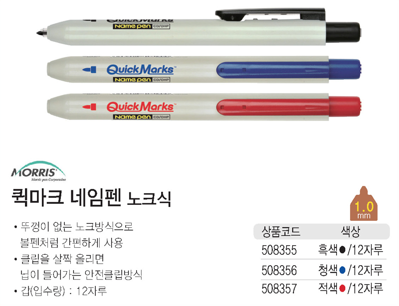 ■품명및모델명 : 퀵마크 네임펜(흑/12자루/모리스)