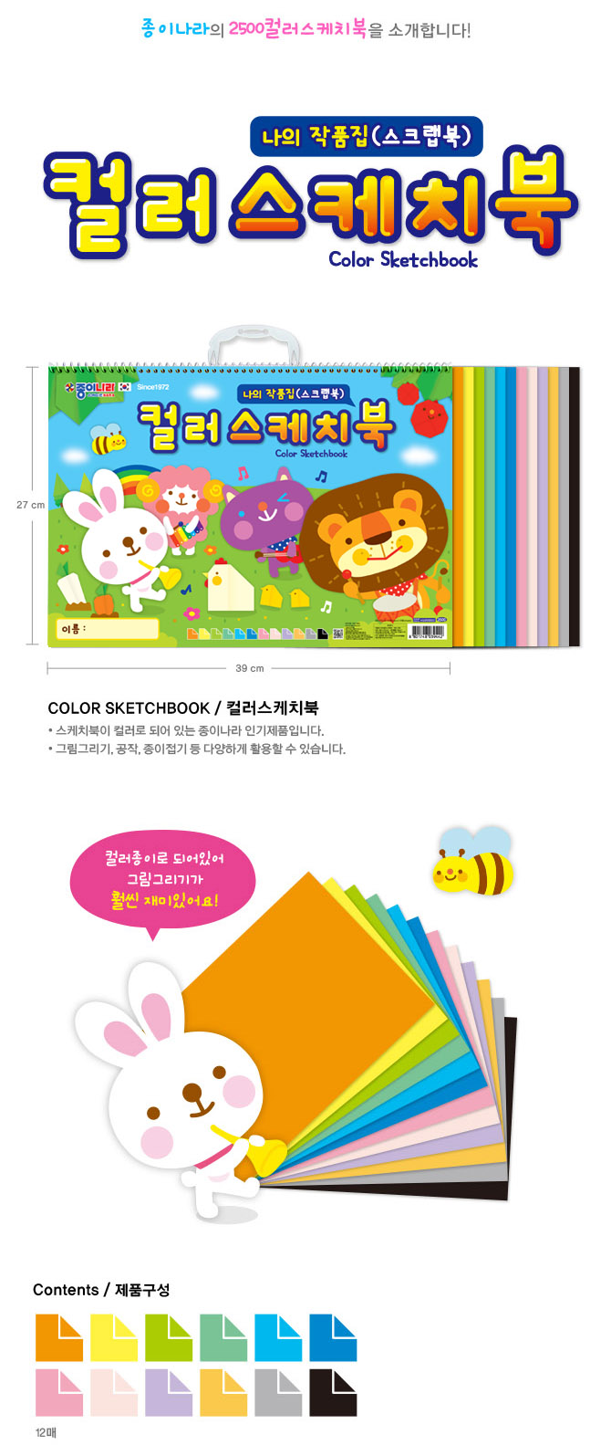 컬러 스케치북(12색 12매/종이나라)/개