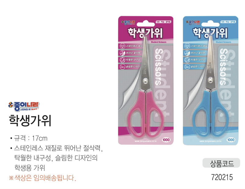 ■품명및모델명 : 학생가위(종이나라) ■법에의한 인증 : 해당없음 ■제조국 or 원산지 : 대한민국 ■수입여부 : 해당없음 ■안전인증여부 : 해당없음