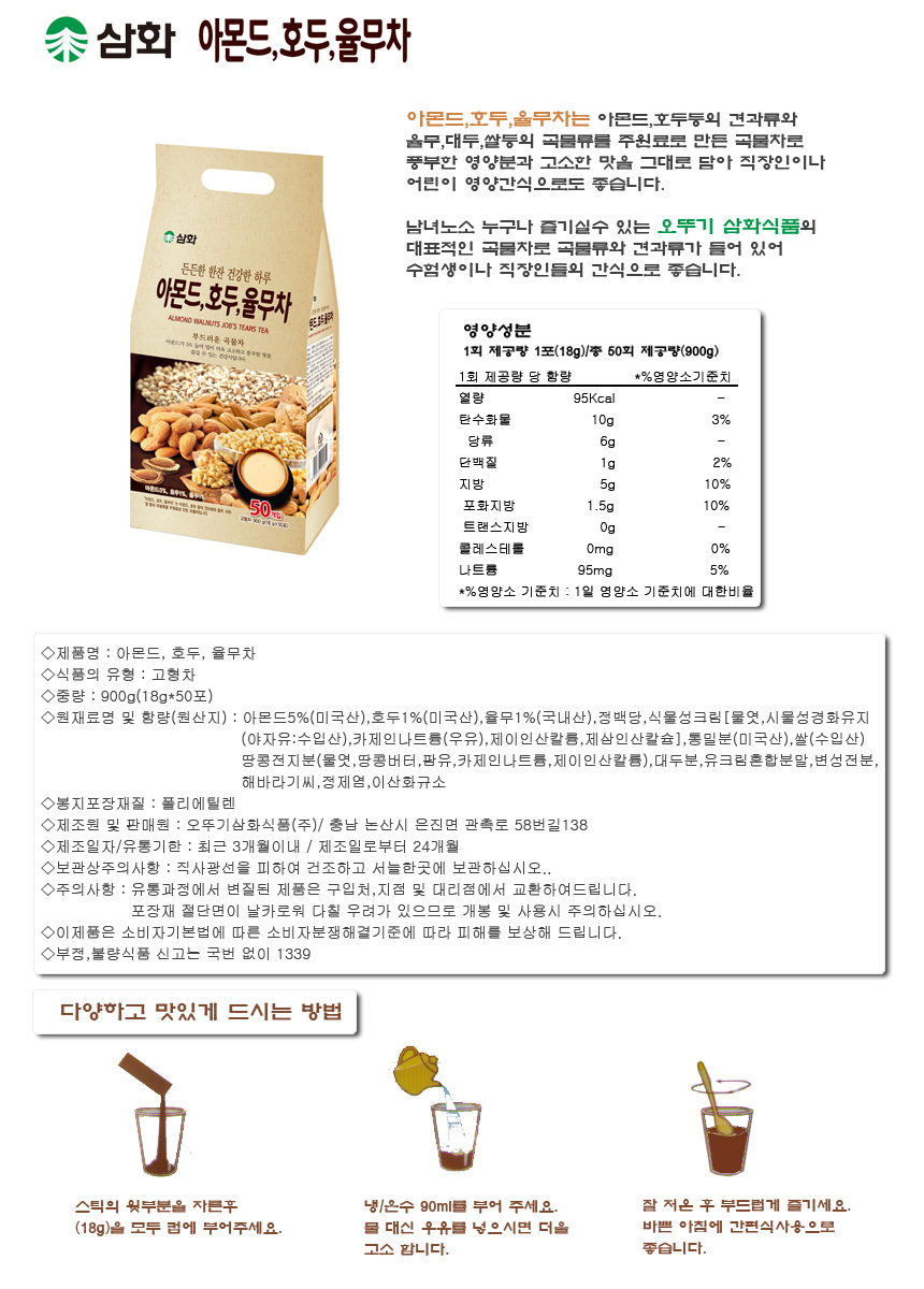 아몬드,호두,율무차(18g/50T/오뚜기)/개