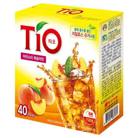 ■주원료.원료산지 : 홍차추출분말(고형분94%이상,독일산)1.6%, 복숭아과즙분말(복숭아고형분40%,프랑스산)0.2%,자일로스 슈거(백설탕,자일로오스,난소화성말토덱스트린),결정과당,구연산,자일리톨,비타민C,합성착향료(복숭아향)이산화규소