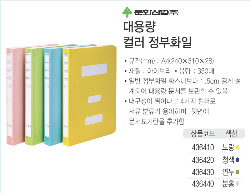 대용량 컬러정부화일(10개팩/노랑/F1194-7/문화산업)/팩/노랑