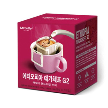■ 식품의 유형 : 원두커피 ■ 생산자 및 소재지 수입여부 : 한국맥널티㈜ ■ 제조연월일(유통기한) : 제조연월일 : 제품 별도 표시유통기한 : 생산일로부터 24개월 ■ 용량(중량), 수량 : 56g(8g*10T) ■ 주원료.원료산지 : 커피원두 100%(에티오피아 예가체프 G2 100%) ■ 영양성분 : 해당없음 ■ 유전자 재조합 식품 여부 : 해당없음 ■ 표시광고 사전심의번호 : 해당없음 ■ 수입식품 여부 : 해당없음 ■ 소비자상담 관련 전화번호 : 한국맥널티㈜/1544-1229