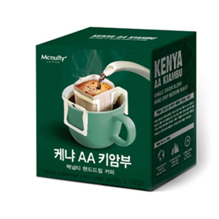 ■ 식품의 유형 : 원두커피 ■ 생산자 및 소재지 수입여부 : 한국맥널티㈜ ■ 제조연월일(유통기한) : 제조연월일 : 제품 별도 표시유통기한 : 생산일로부터 24개월 ■ 용량(중량), 수량 : 56g(8g*12T) ■ 주원료.원료산지 : 커피원두 100%(케냐AA 키암부 100%) ■ 영양성분 : 해당없음 ■ 유전자 재조합 식품 여부 : 해당없음 ■ 표시광고 사전심의번호 : 해당없음 ■ 수입식품 여부 : 해당없음 ■ 소비자상담 관련 전화번호 : 한국맥널티㈜/1544-1229