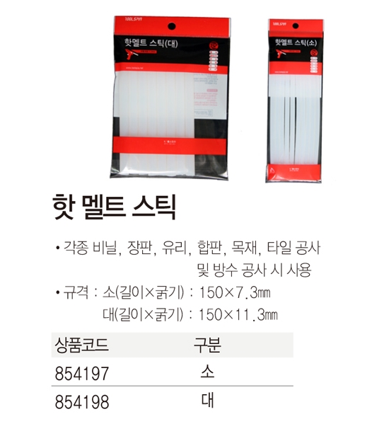 ■ 품명 및 모델명 : 핫멜트스틱(소/10개입) ■ 법에의한 안전인증여부 : 해당사항없음 ■ 수입여부 : 해당사항없음 ■ 제조국 or 원산지 : 한국