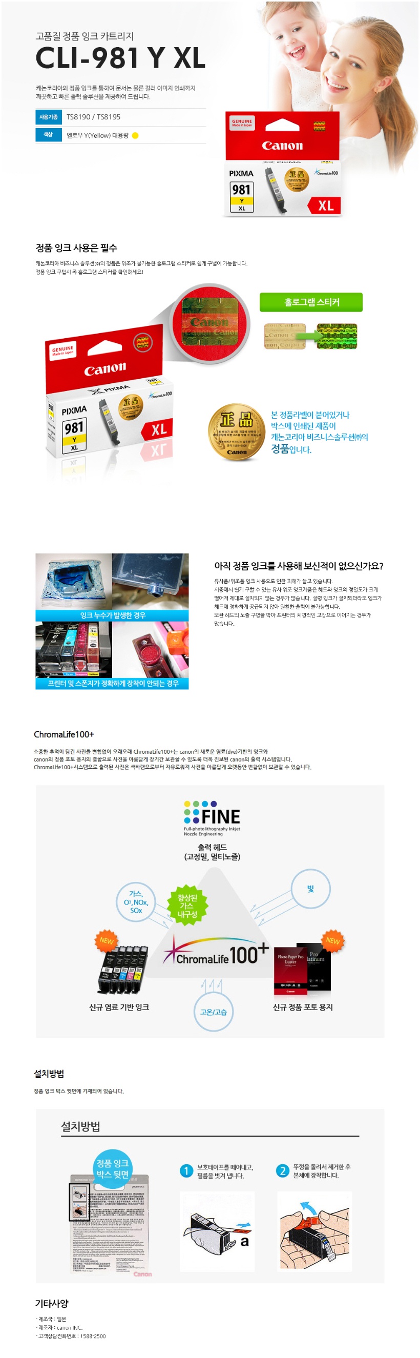 ■ 품명및모델명ⓢ[업체별도배송]CLI-981Y XL(캐논/잉크/노랑 대용량)