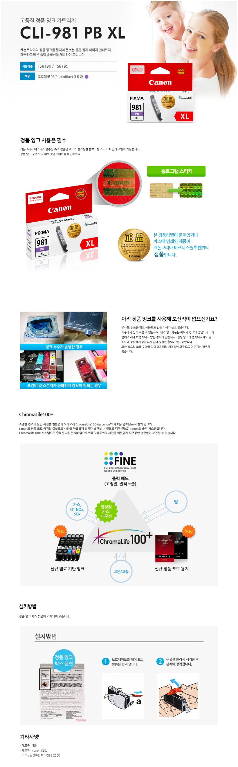 ■ 품명및모델명ⓢ[업체별도배송]CLI-981PB XL(캐논/잉크/포토파랑 대용량)