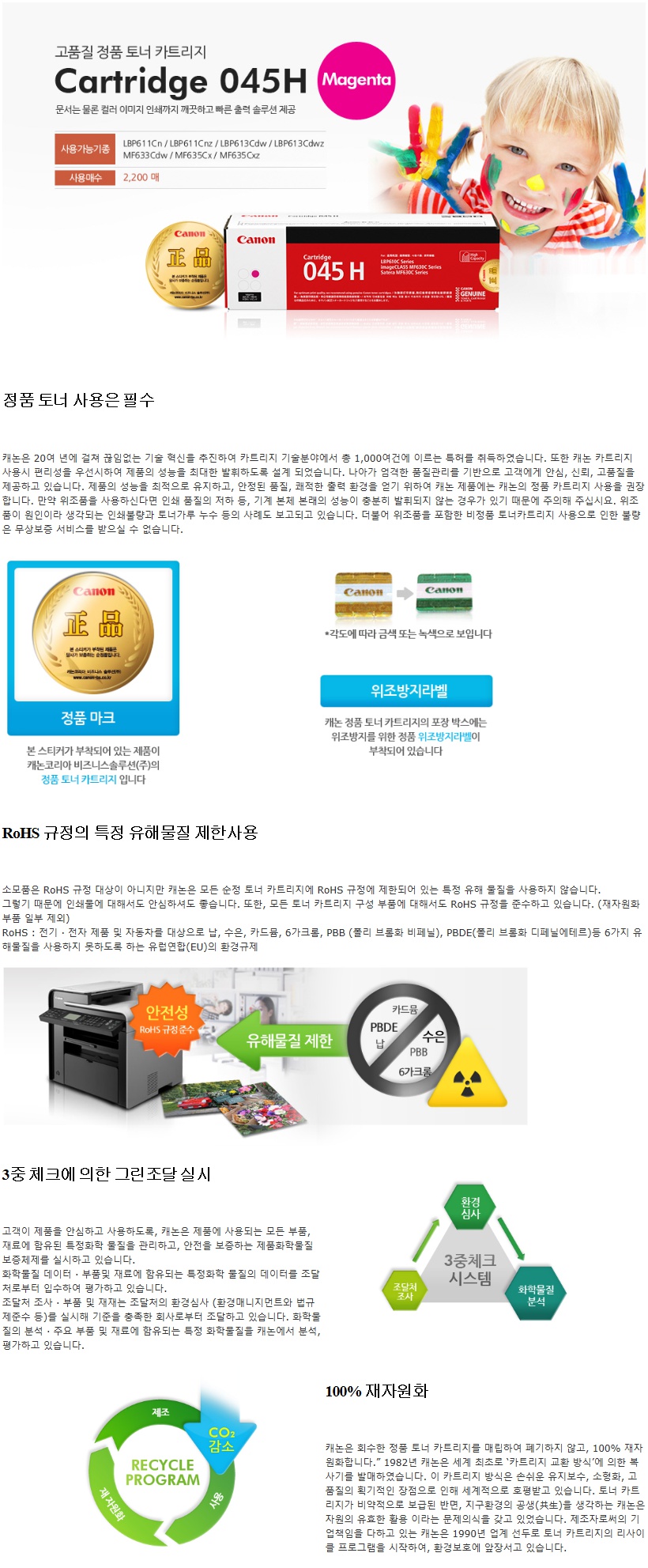 ■ 품명및모델명ⓢ[업체별도배송]CRG-045H M(캐논/토너/빨강)