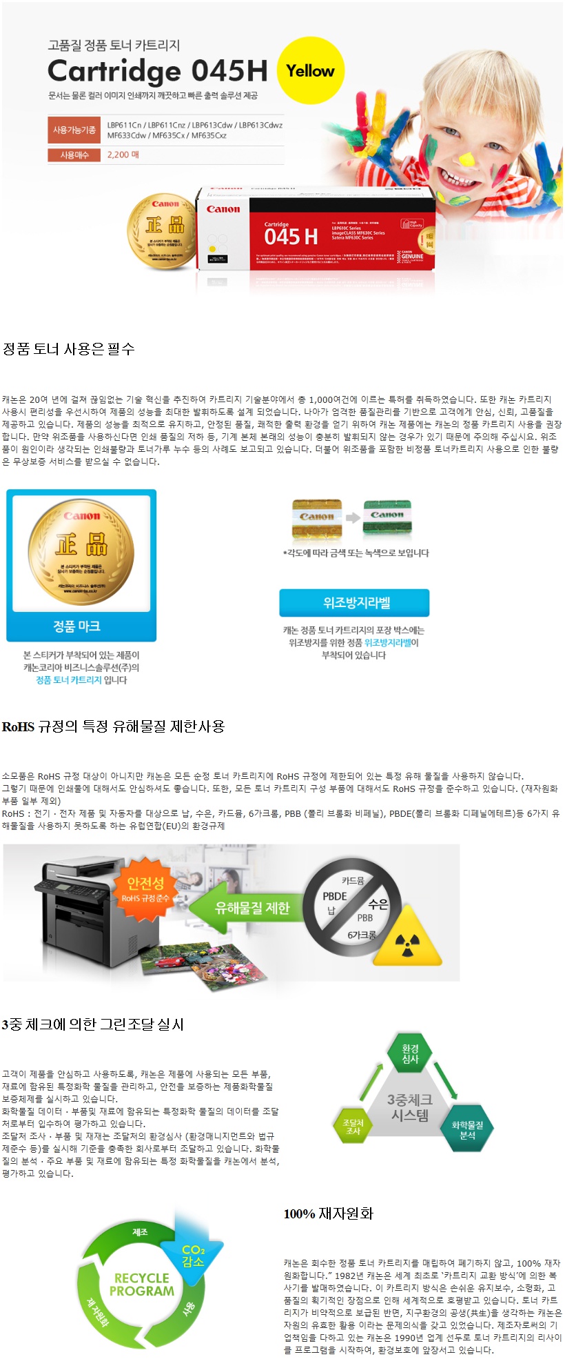 ■ 품명및모델명ⓢ[업체별도배송]CRG-045H Y(캐논/토너/노랑)