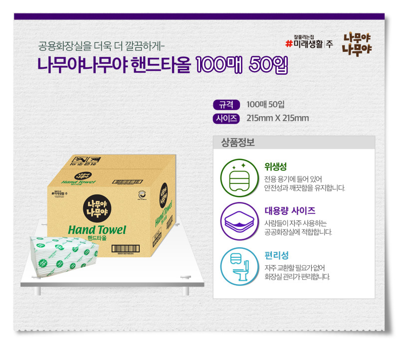 나무야 나무야 핸드타월 5000매(100매*50밴드/225*215mm/2겹/미래생활)/박스