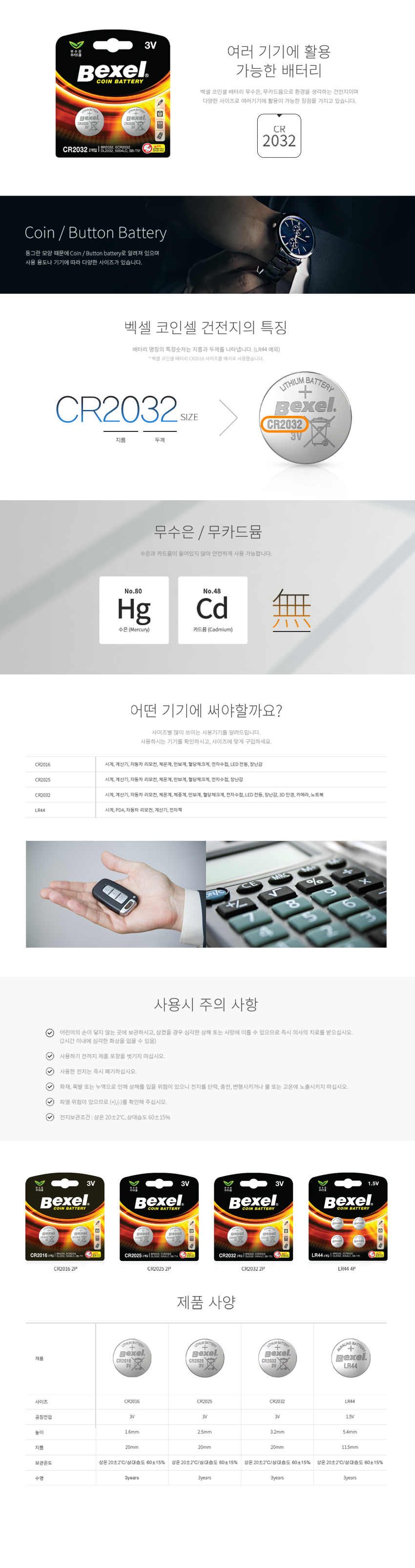 ■ 품명 및 모델명 : 벡셀_ 리튬 코인 건전지(LR44)