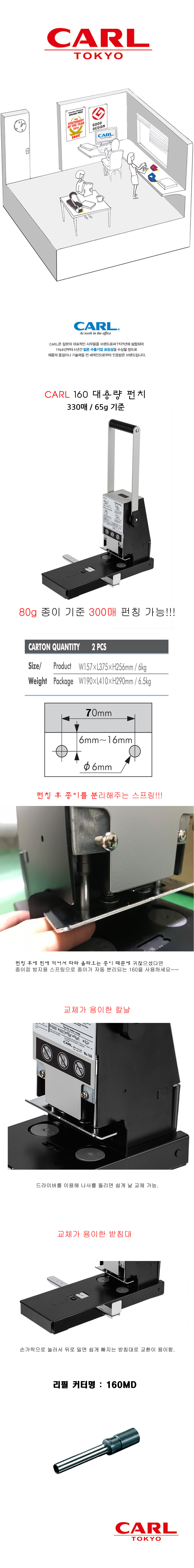 [업체별도배송]강력 2공펀치(NO-160/CARL)/개