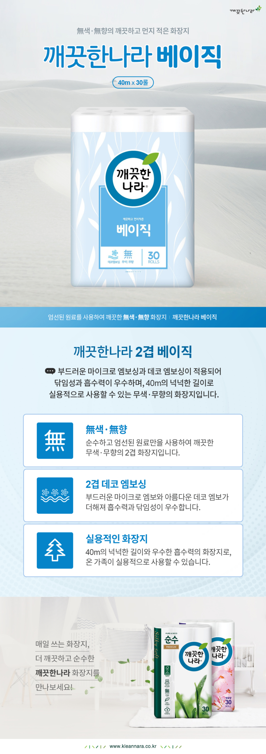 깨끗한나라 2겹 에코베이직 화장지(40m*30롤/깨끗한나라)/팩