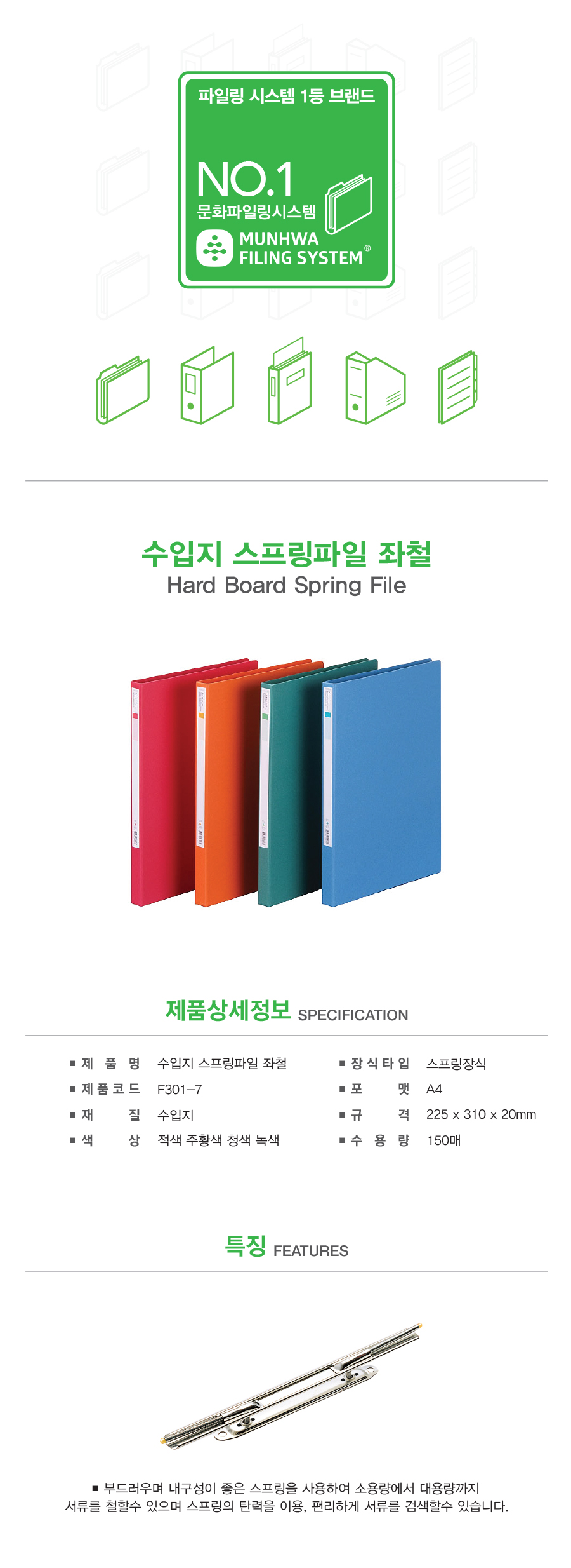 스프링화일(수입지/좌철/청색/F301-7/문화산업)/개