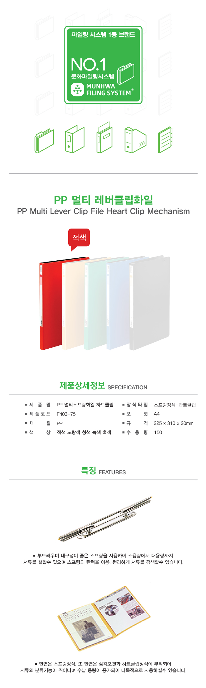 멀티스프링화일(F403-75/적/PP/하트장식)/개