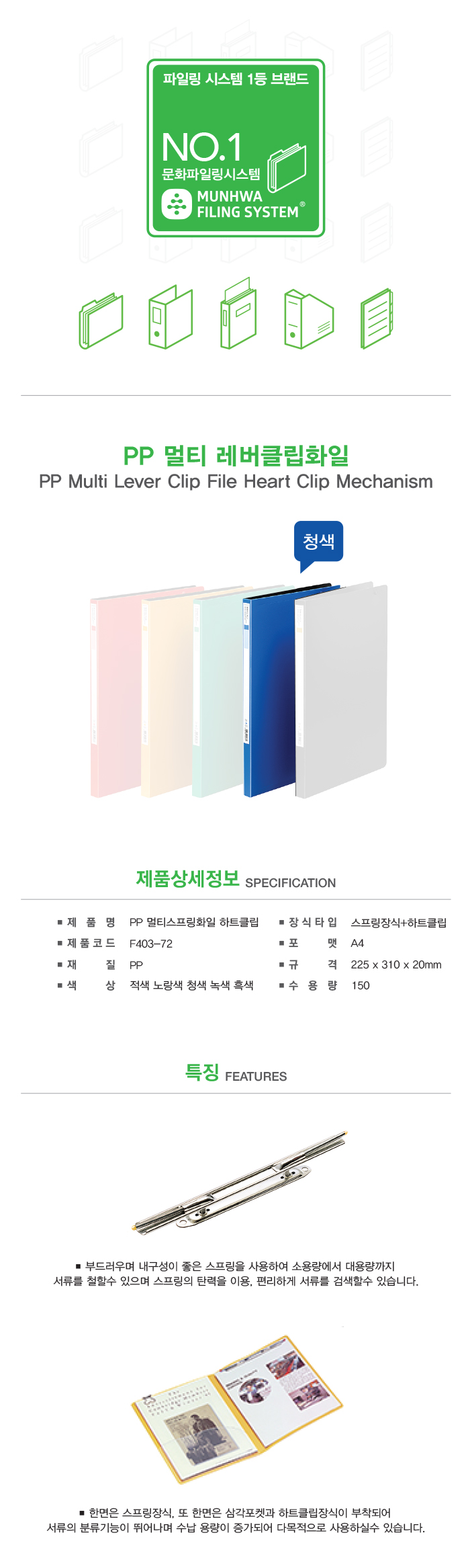 멀티스프링화일(F403-72/청/PP/하트장식)/개