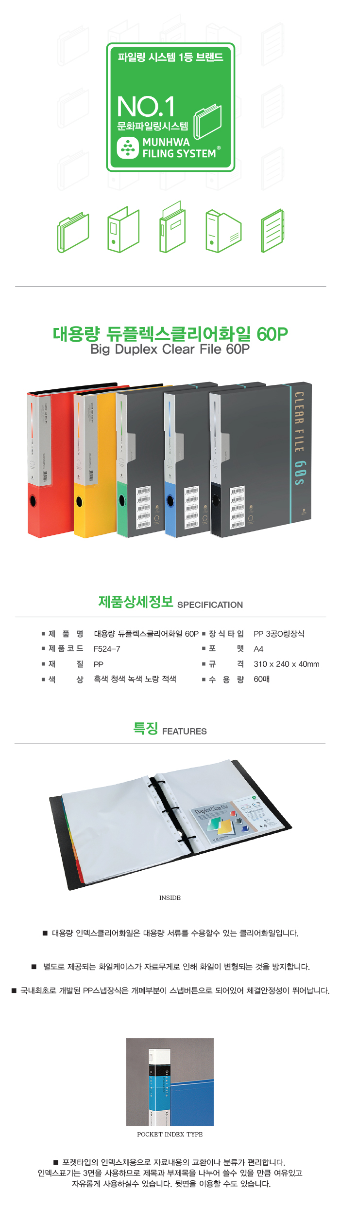인덱스 클리어 화일(60매/흑색/F524-7/문화산업)/개