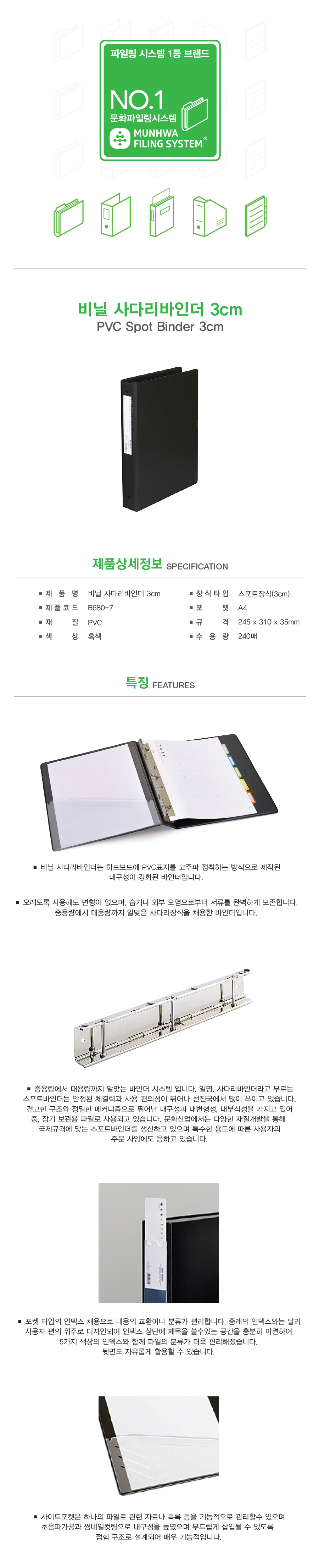 [업체별도배송]비닐사다리바인더(B680-71/흑색/폭3cm/문화산업)/개