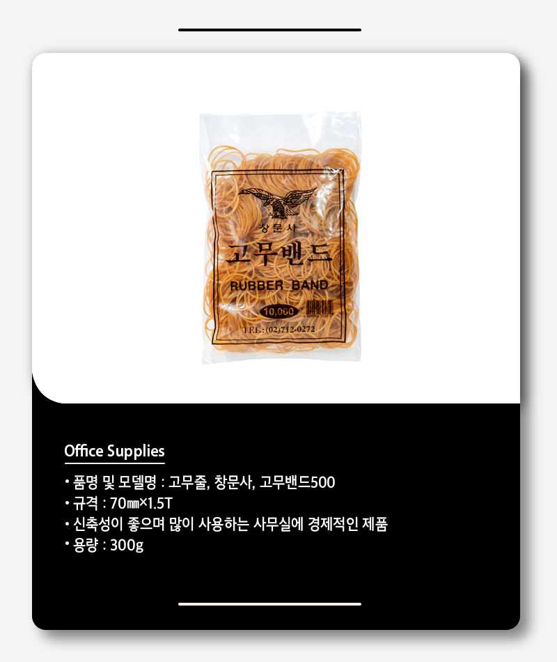 ■품명 및 모델명 : ⓐ고무줄, 창문사, 고무밴드 10000