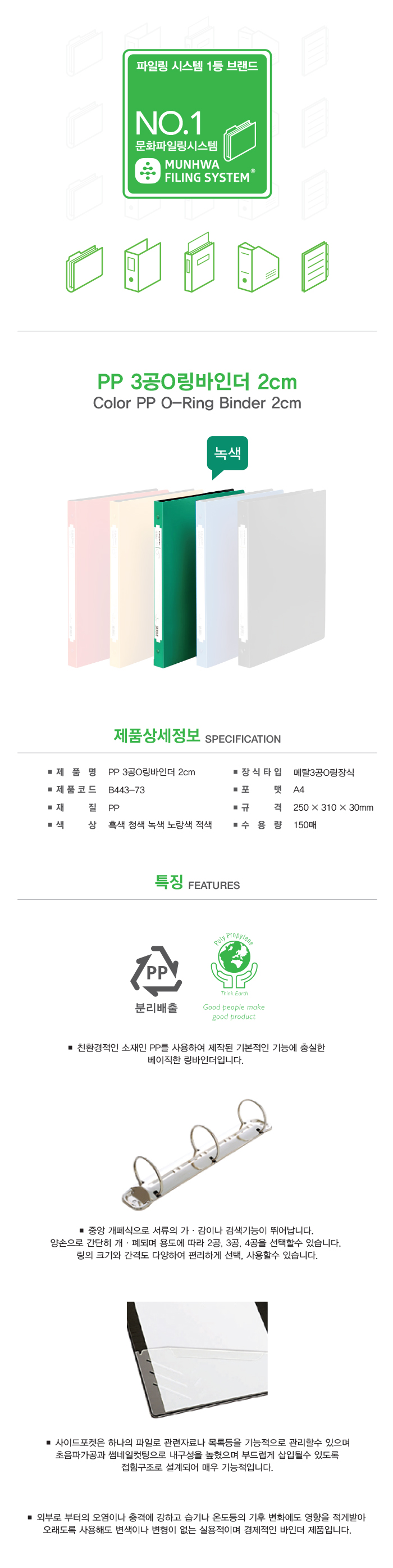 ■ 품명및모델명PP 3공O링바인더(2cm/B443-73/녹색/문화산업)