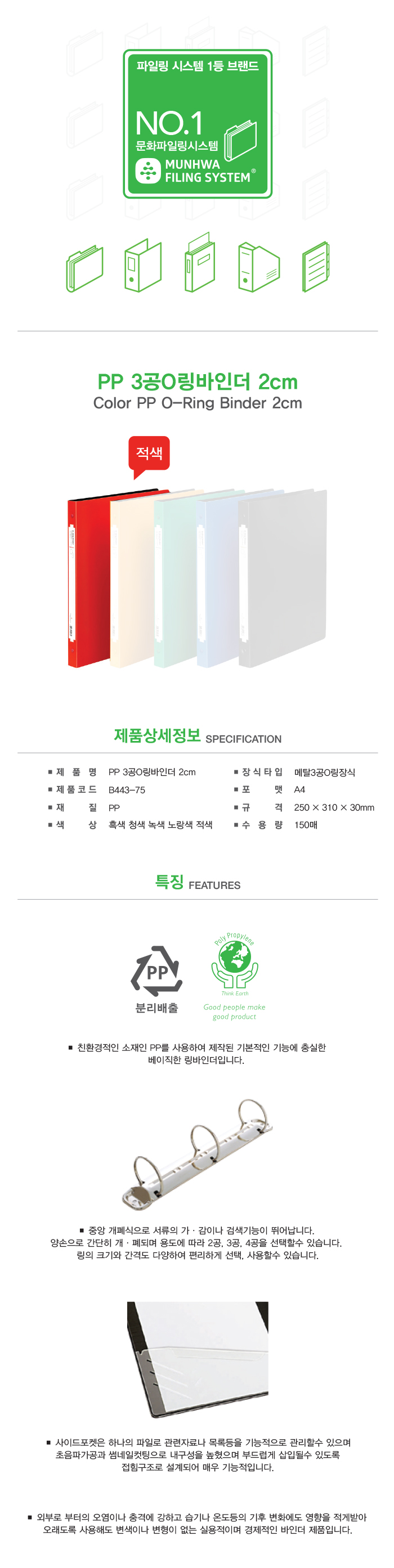 ■ 상품명ⓐPP 3공O링바인더(2cm/B443-75/적색/문화산업)