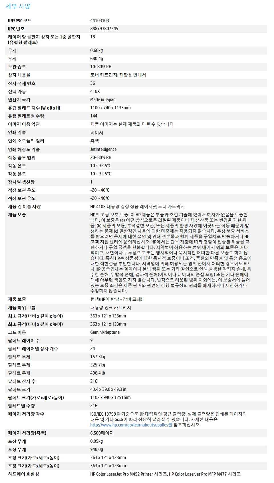 [업체별도배송][NO.410X]CF410X(HP/토너/검정)/개