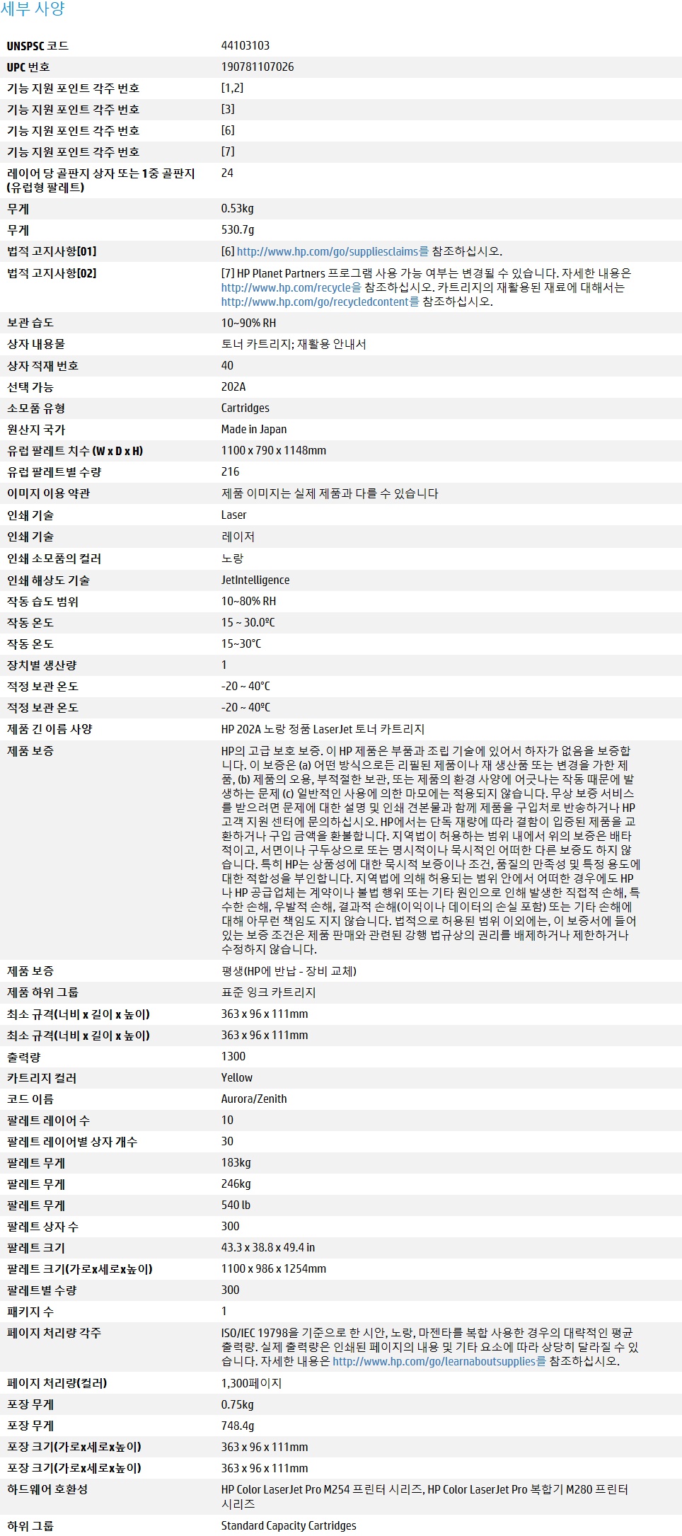 [NO.202A]CF502A(HP/토너/노랑)/개