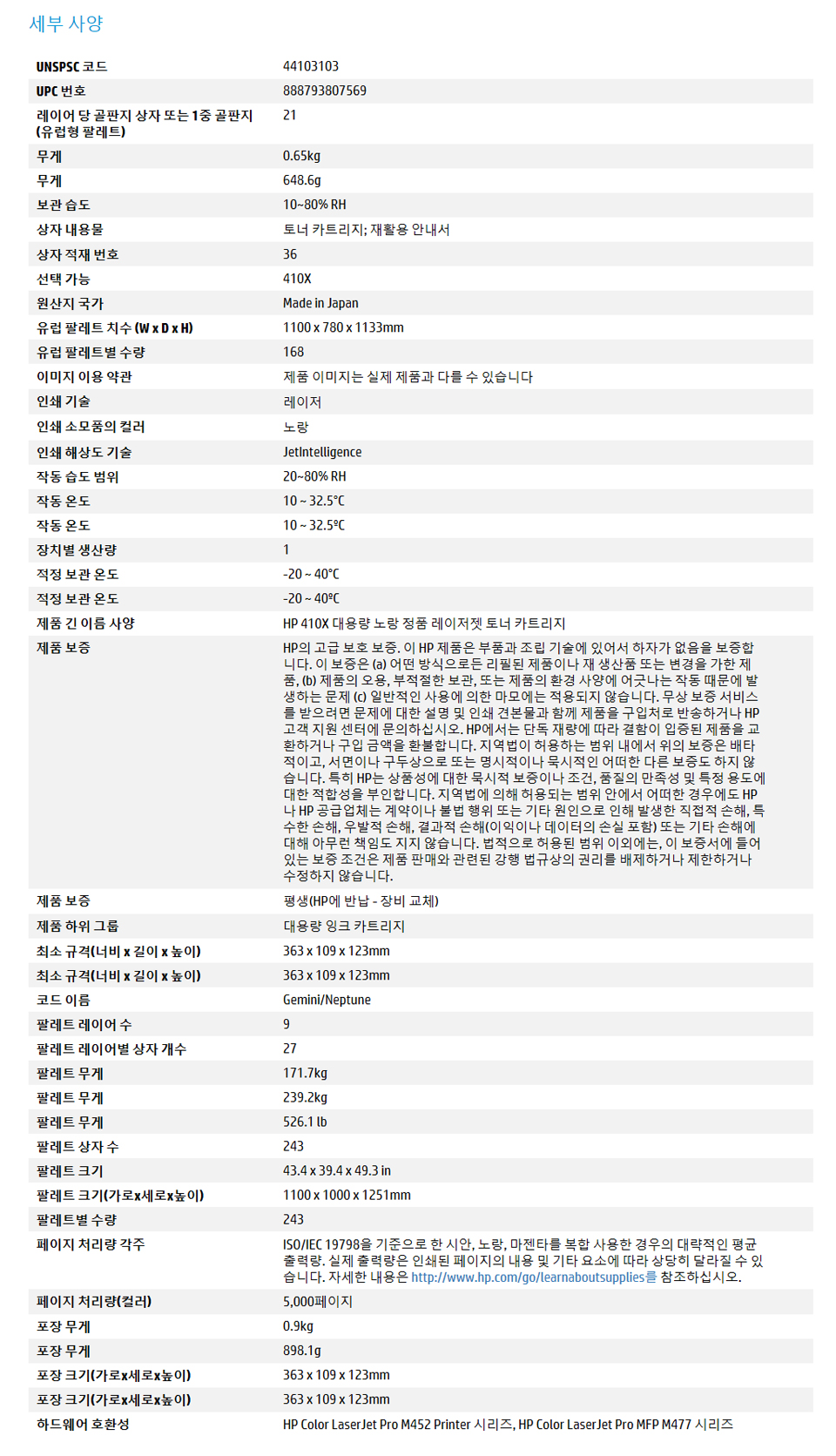 [업체별도배송][NO.410X]CF412X(HP/토너/노랑)/개