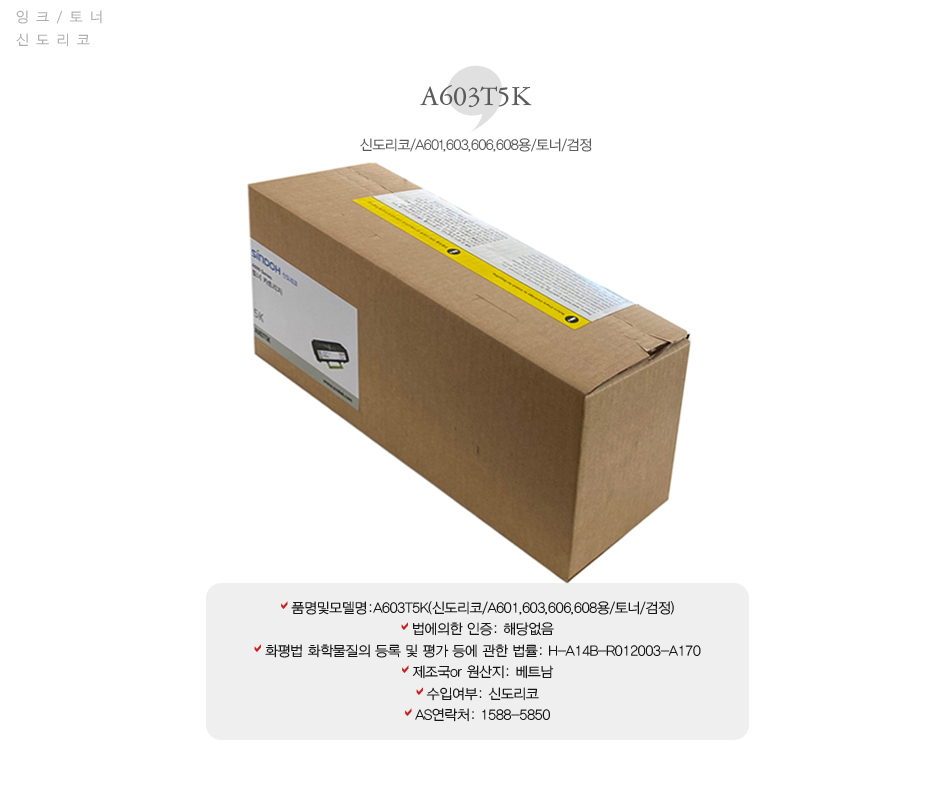 [업체별도배송]A603T5K(신도리코/A601,603,606,608용/토너/검정)/개