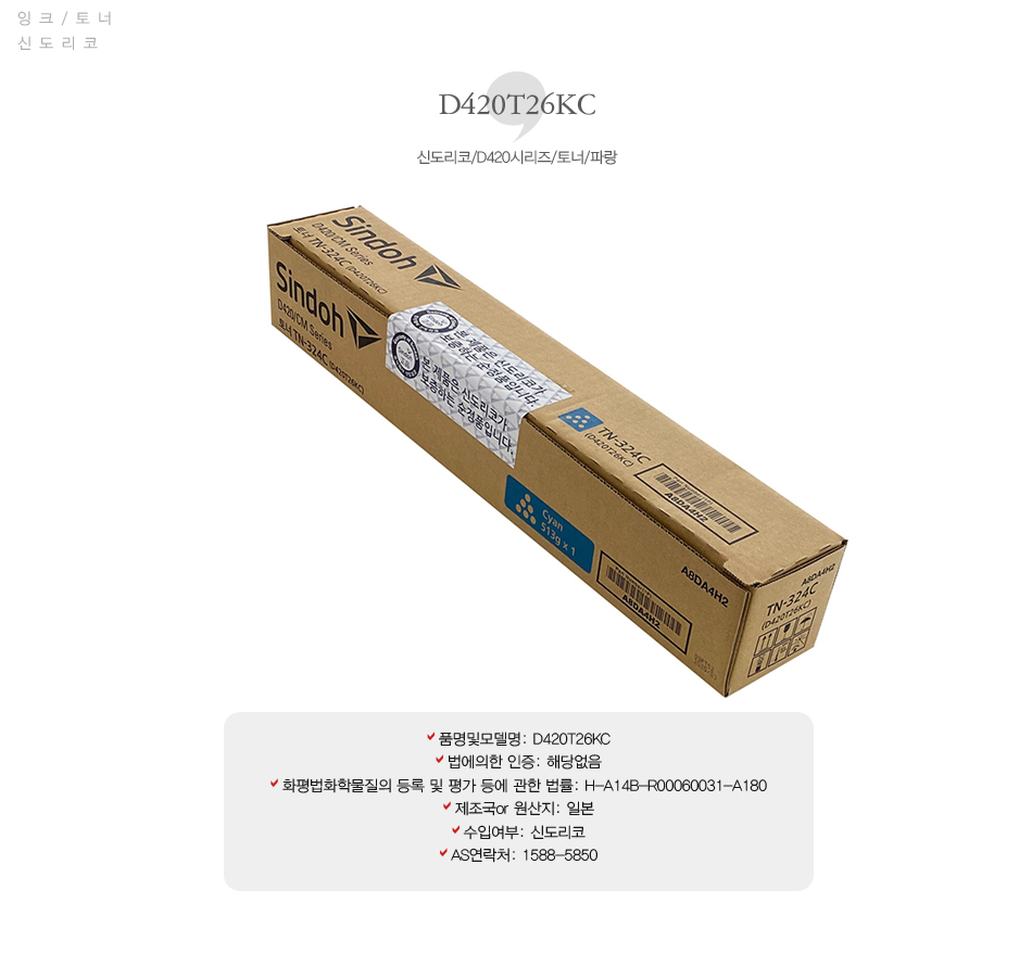 [업체별도배송]D420T26KC(신도리코/D420시리즈/토너/파랑)/개