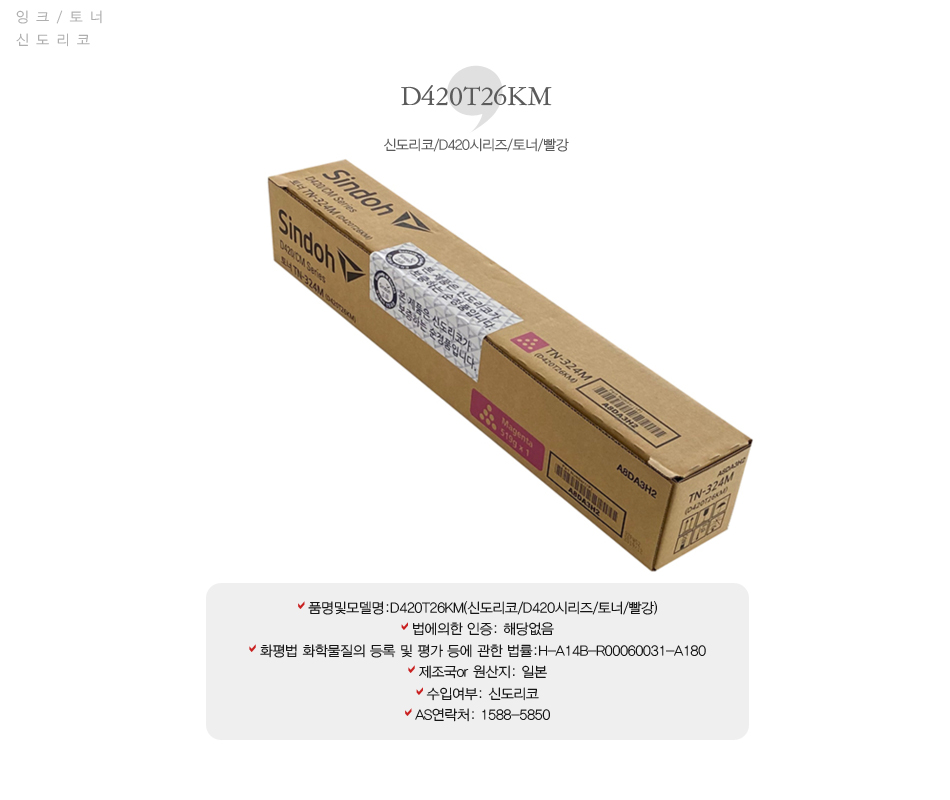 [업체별도배송]D420T26KM(신도리코/D420시리즈/토너/빨강)/개