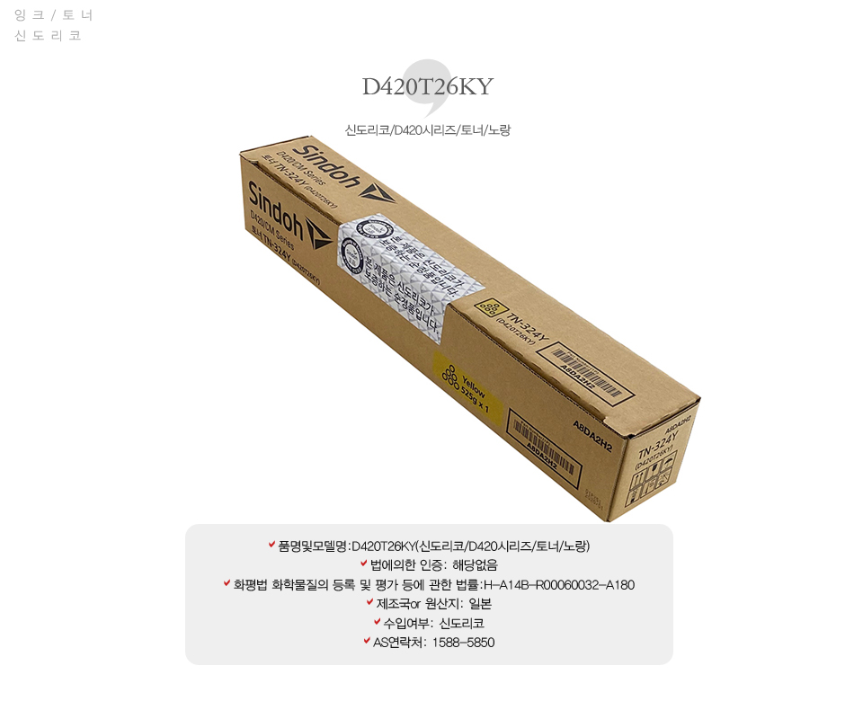 [업체별도배송]D420T26KY(신도리코/D420시리즈/토너/노랑)/개